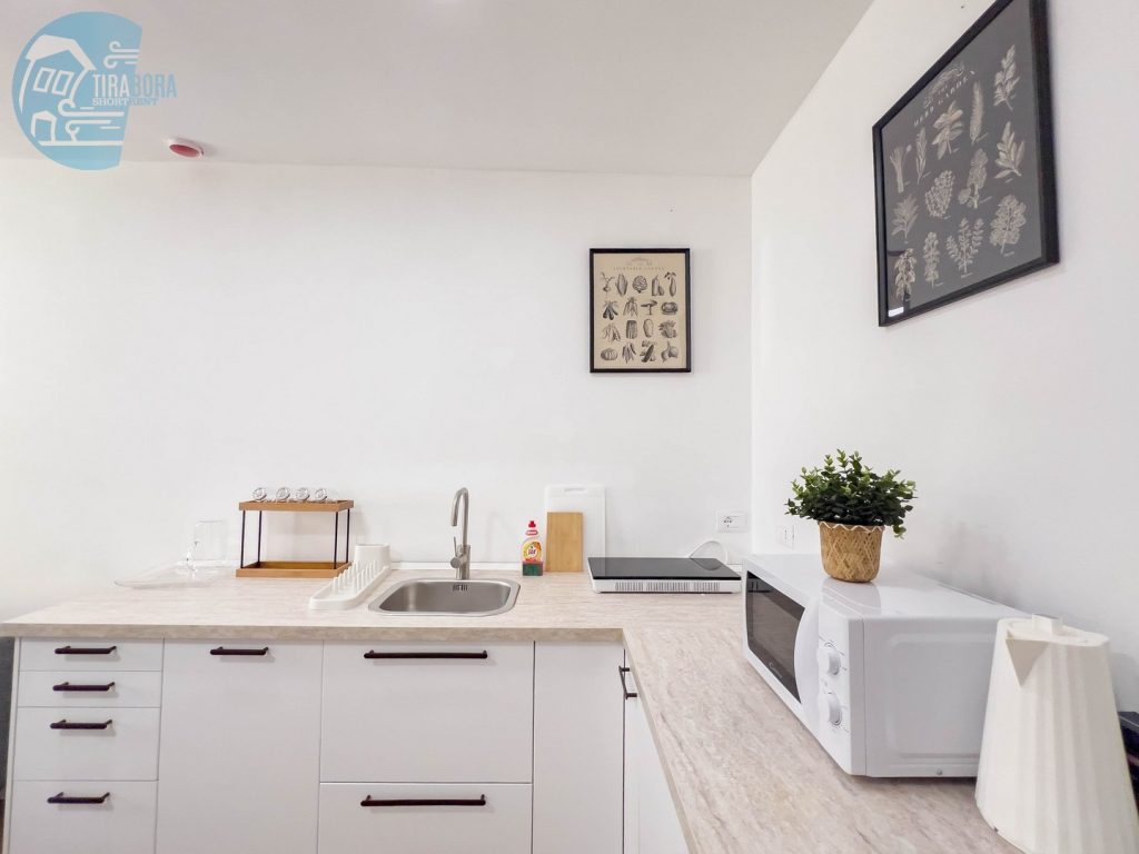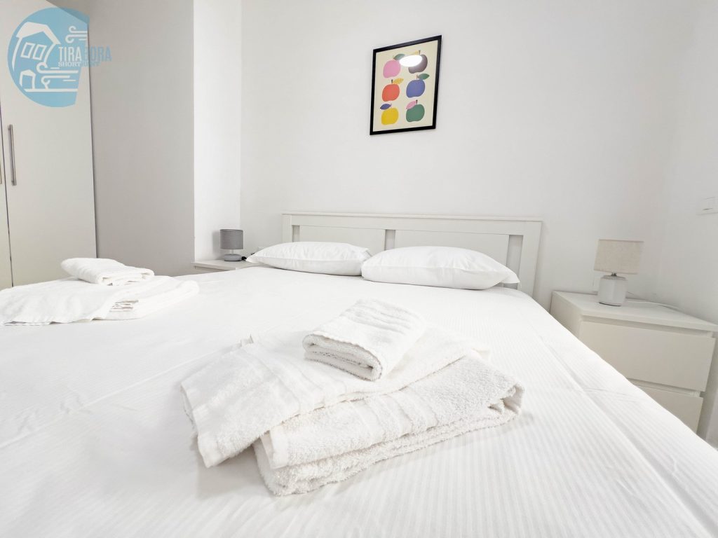 L’interno dell’appartamento è pensato per garantire il massimo del comfort e dell’autonomia. È dotato di un comodo letto matrimoniale e di un divano letto matrimoniale, rendendo l’abitazione ideale sia per singoli individui, coppie, o piccole famiglie. La possibilità di trasformare il soggiorno in una seconda camera da letto aumenta notevolmente la flessibilità dell’uso dello spazio.