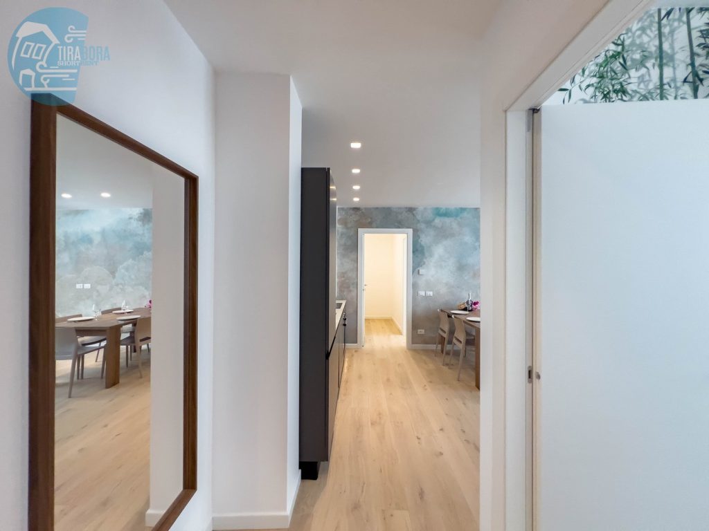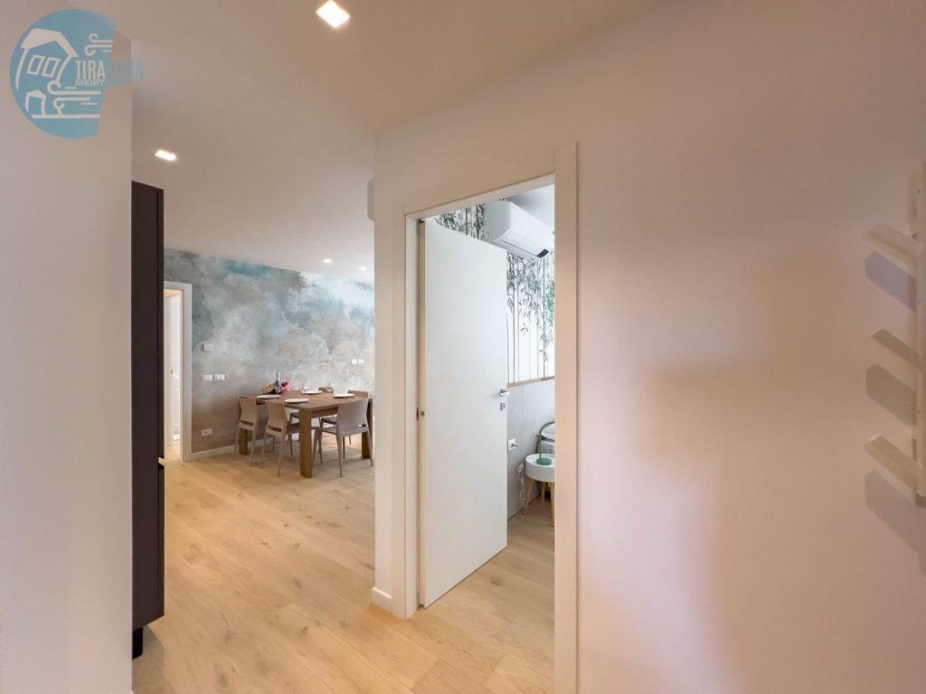 Uno degli aspetti più notevoli di questo appartamento è la presenza di un posto macchina privato nel garage al piano interrato dell’edificio, un vero valore aggiunto in una città dove il parcheggio può essere difficoltoso. Questo rende l’appartamento particolarmente conveniente per chi possiede un’auto.