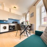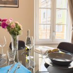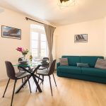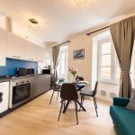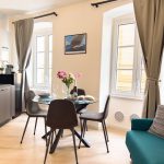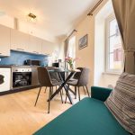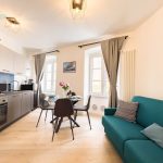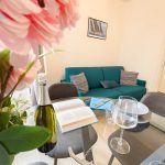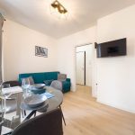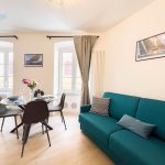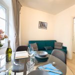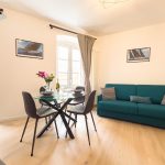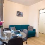 Il soggiorno è arredato con gusto e offre un ambiente ideale per rilassarsi dopo una giornata trascorsa a esplorare la città. Il confortevole divano, che si trasforma in divano letto, vi invita a distendervi e godervi un buon libro o guardare un film sulla Smart TV a schermo piatto.