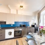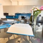 La cucina moderna e completamente attrezzata è un vero gioiello di design. Troverete tutto il necessario per preparare i vostri pasti, inclusi elettrodomestici di alta qualità e utensili da cucina. Potrete gustare le vostre creazioni culinarie nel luminoso spazio dedicato alla sala da pranzo, dotato di un elegante tavolo e sedie per quattro persone.