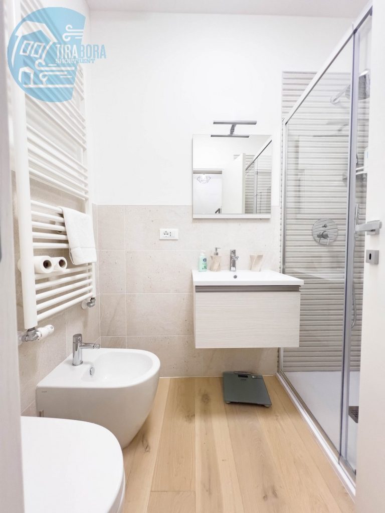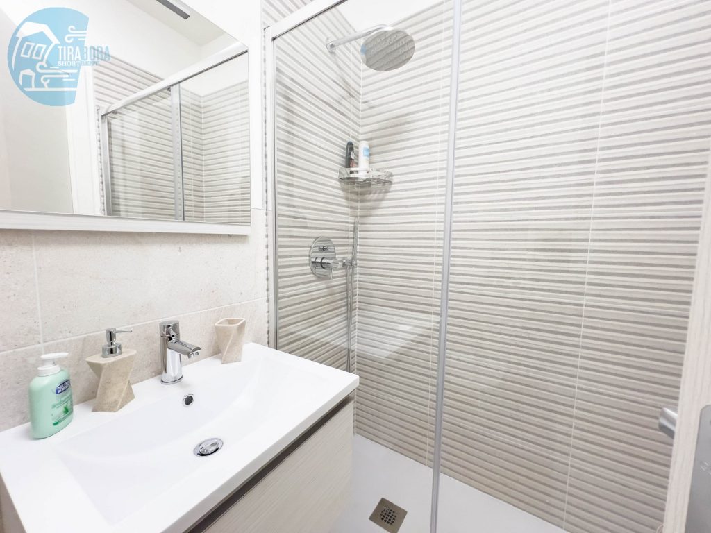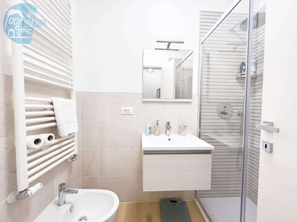 Il bagno è moderno e completo di una spaziosa doccia, asciugamani soffici saranno in dotazione per coccolarvi dopo una rigenerante doccia.