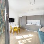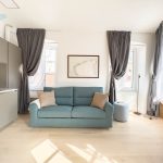 Il soggiorno è arredato con gusto e offre un ambiente ideale per rilassarsi dopo una giornata trascorsa a esplorare la città. Il confortevole divano, che si trasforma in divano letto, vi invita a distendervi e godervi un buon libro o guardare un film sulla Smart TV a schermo piatto.