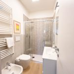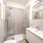 Il bagno è moderno e elegante, completo di una spaziosa doccia, asciugamani soffici e articoli da toeletta di qualità.