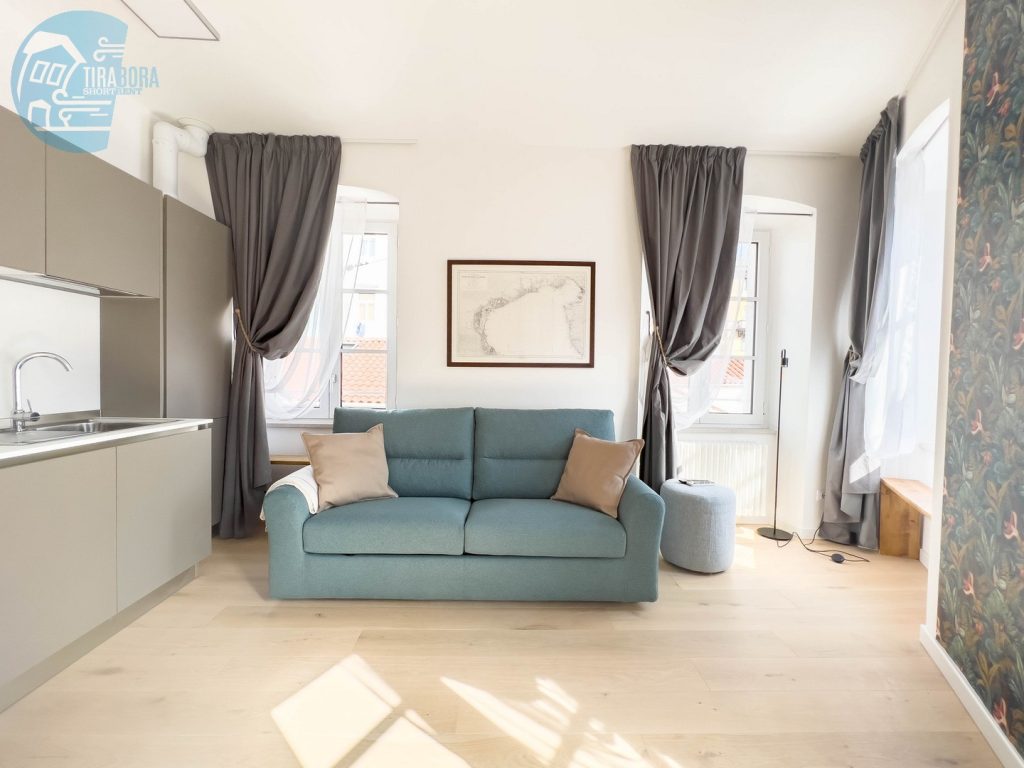 Il soggiorno è arredato con gusto e offre un ambiente ideale per rilassarsi dopo una giornata trascorsa a esplorare la città. Il confortevole divano, che si trasforma in divano letto, vi invita a distendervi e godervi un buon libro o guardare un film sulla Smart TV a schermo piatto.