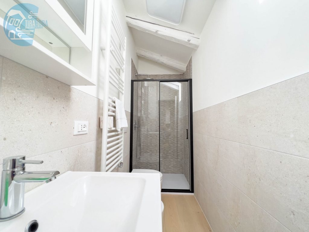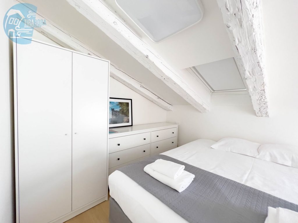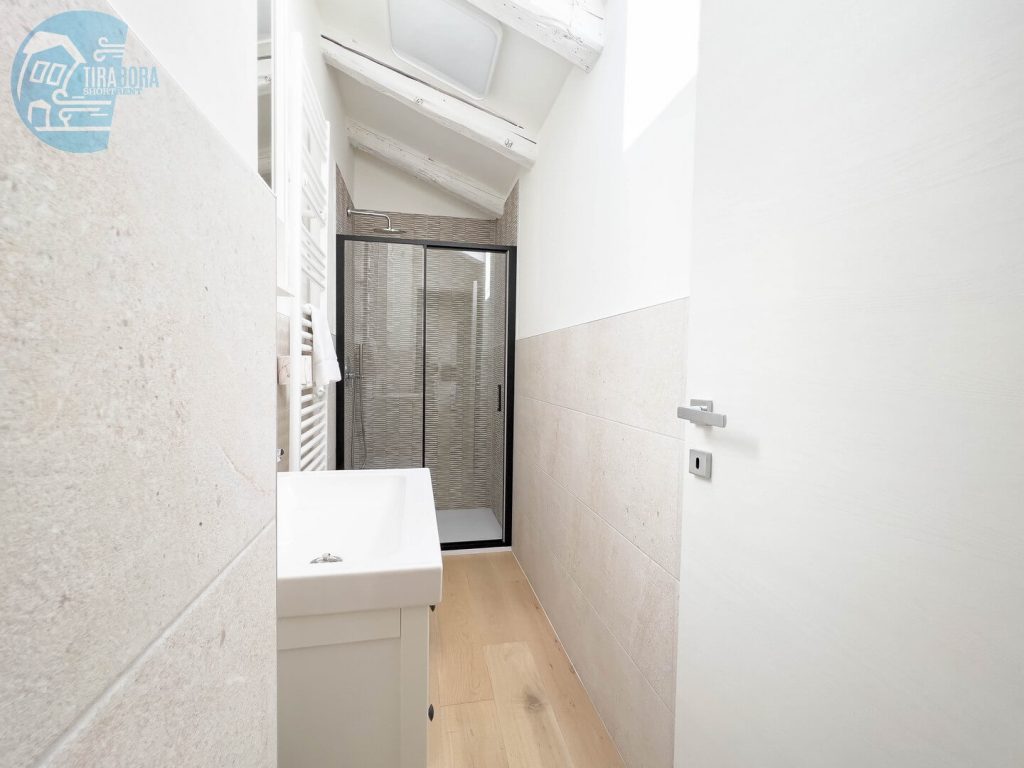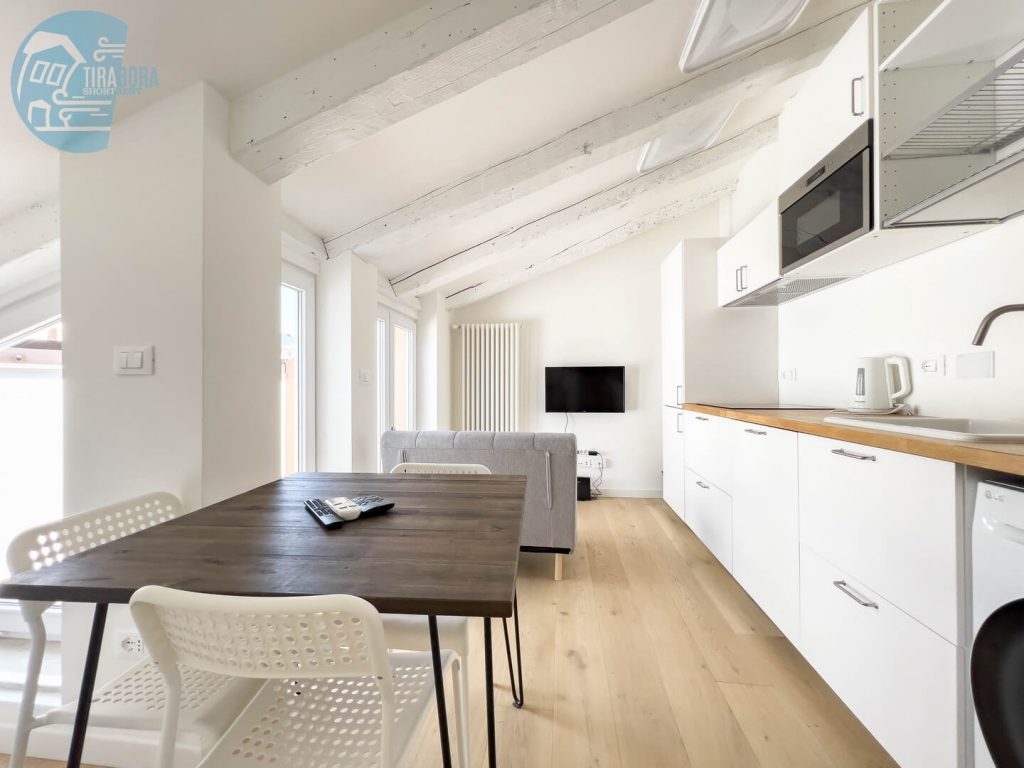 La luminosità dell’appartamento è accentuata dalle travi a vista, che donano un tocco di calore e autenticità all’ambiente. Vi sentirete immersi in un’atmosfera accogliente e familiare.