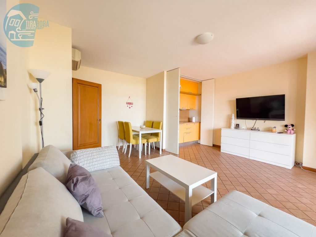 Soggiorno: Un accogliente soggiorno con divano letto per due persone, ideale per rilassarsi dopo una giornata al mare.