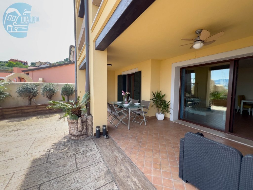Patio: Un ampio patio di proprietà con tavolo, perfetto per pranzi, cene e colazioni con vista mare mozzafiato.