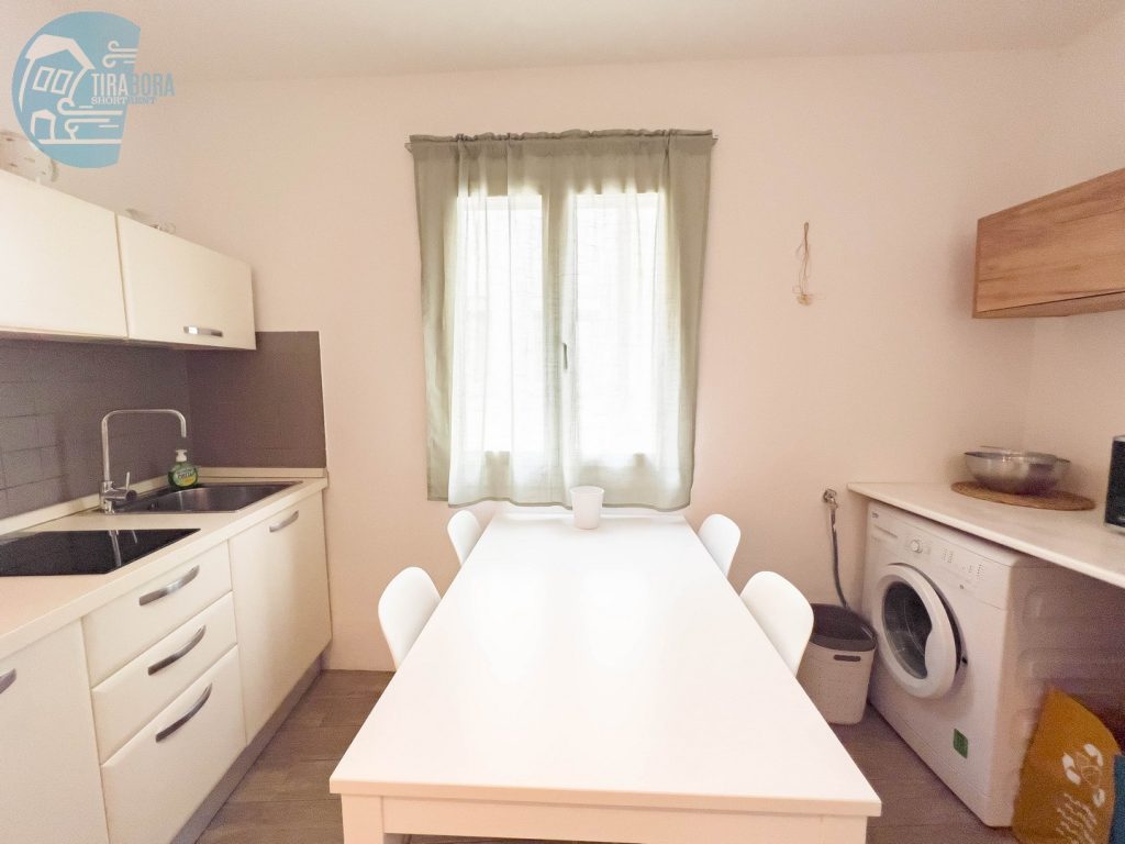 Il bagno ben fornito assicura comfort e praticità. Con un accesso agevole tramite ascensore, l’appartamento si trova al secondo piano, rendendo il soggiorno ancora più comodo. La posizione privilegiata a due passi da Piazza Unità consente di godere appieno delle bellezze del centro storico, con ristoranti, bar e negozi nelle immediate vicinanze.