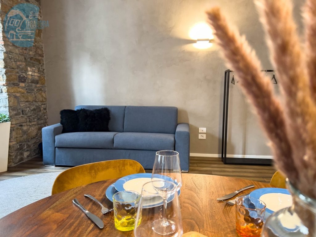 L’appartamento è pensato per alloggiare fino a quattro ospiti che avranno a disposizione una splendida camera da letto matrimoniale con cabina armadio affacciata su Via San Nicolò e vista sulle splendide e preziose facciate dello stabile sul lato opposto e il comodo divano letto matrimoniale della zona giorno.
