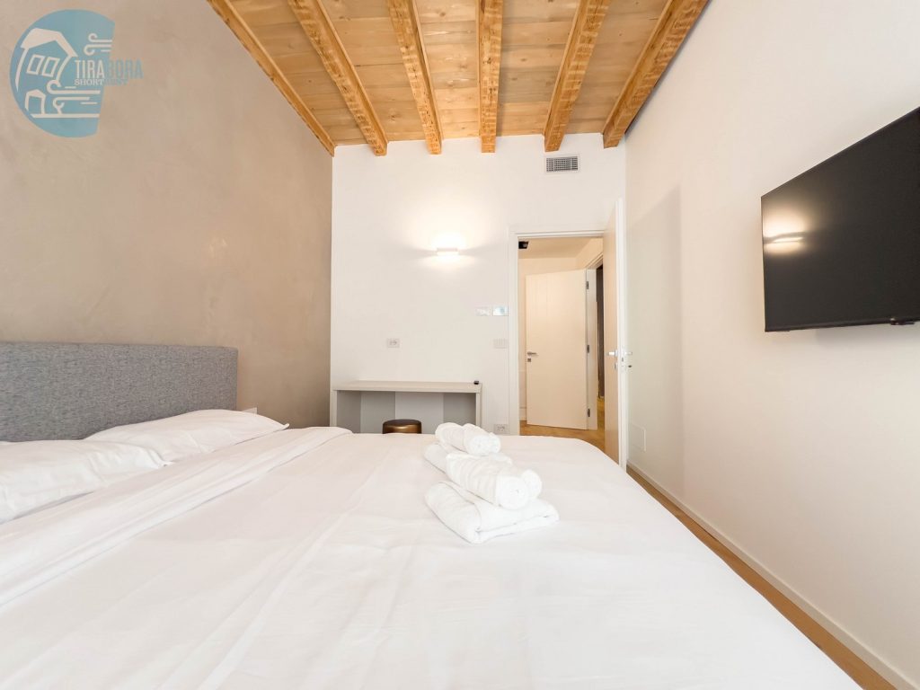 Spazio e comfort: San Nicolò 14B è testimonianza di eleganza, comfort e design. Perfezione fatta alloggio, con una “chirurgica” attenzione ai dettagli e tocchi di indiscutibile raffinatezza come le travi di legno a vista sul soffitto che sottolineano, facendogli da cornice, il carattere contemporaneo ed elegante dell’intero appartamento.
