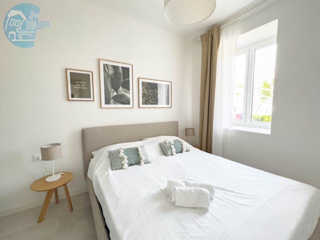 All’interno dell’appartamento troverete una camera da letto confortevole. Il soggiorno è arredato con un comodo divano letto matrimoniale, offrendo ulteriori possibilità di pernottamento. I due bagni moderni sono dotati di ogni comfort, garantendo un soggiorno in piena autonomia.