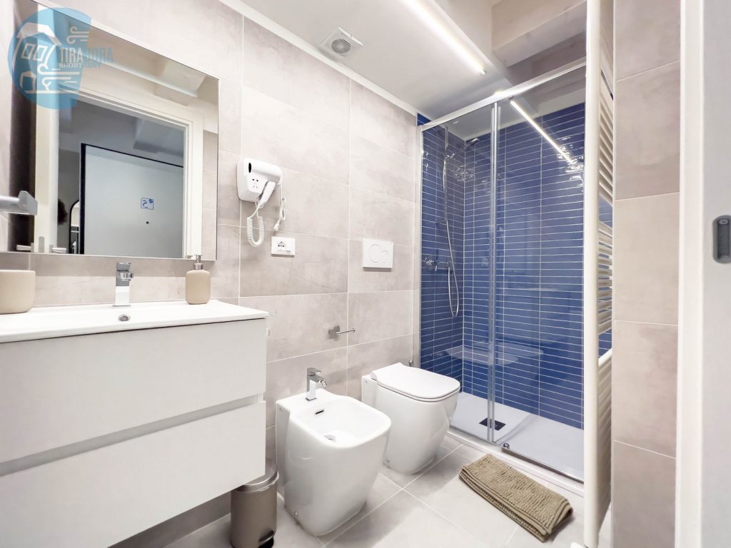 Il bagno è dotato di ogni comfort che potreste desiderare, garantendo un’esperienza di soggiorno in piena autonomia. Potrete rilassarvi e godervi la vista sul mare dalle nostre doppie terrazze, perfette per trascorrere piacevoli momenti all’aperto.